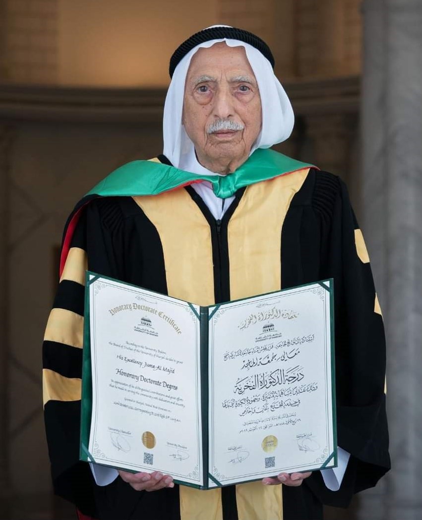 نفخر بمنح الدكتوراة الفخرية لرموز المجتمع (نحن فخورون بك) باسمى عبارات التهنئة والتبريكات تتقدم المدارس الأهلية الخيرية إلى معالي السيد جمعة الماجد بمناسبة منحه شهادة الدكتوراة الفخرية من جامعة الشارقة سائلين المولى عز وجل أن يرفع مقامكم ودرجاتكم و دعواتنا لكم بالتوفيق والنجاح