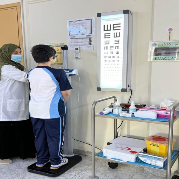 حرصت الإدارة العامة وإدارة المدرسة على ايجاد عيادة طبية مجهزة بكامل الإحتياجات من أدوات ومواد طبية وأدوية أوليه .
