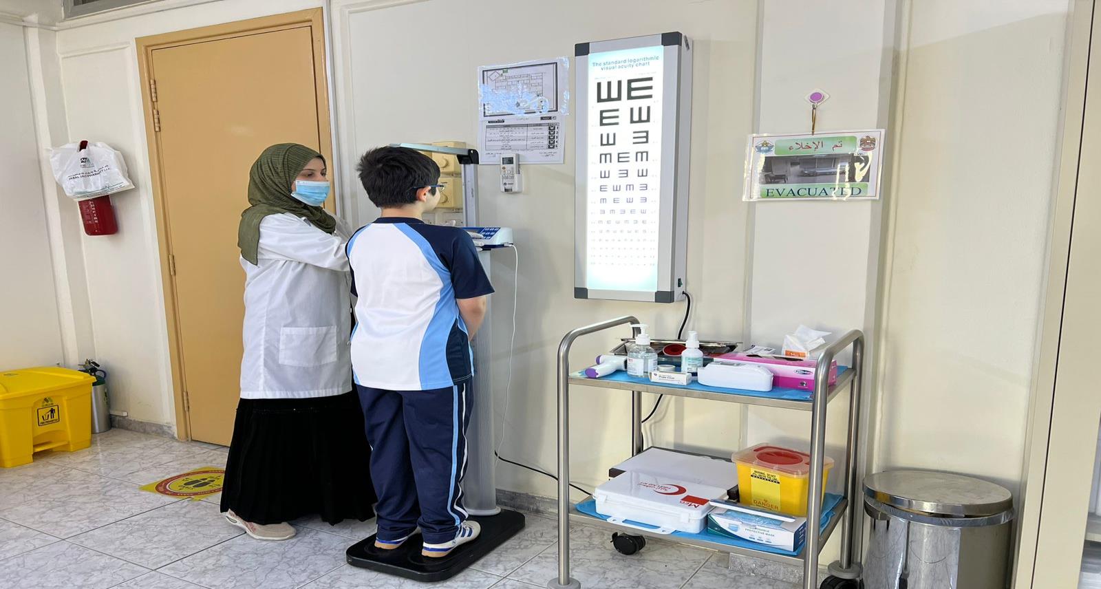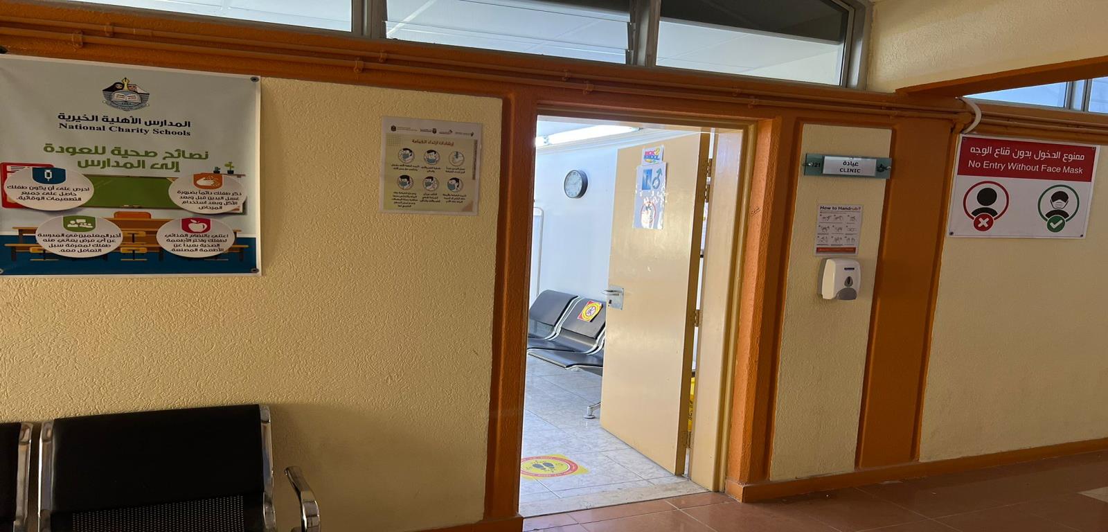 حيث تم أنشاء العيادة الرئيسية للمدرسة مجهزة بالكامل ، وغرفة عزل كاملة ودورات مياة خاصة بالعيادة ، ودورات مياة خاصة بذوي الهمم ، وغرفة خاصة لجمع النفايات الطبية والتعاقد مع بلدية عجمان لأتلاف المواد الطبية .