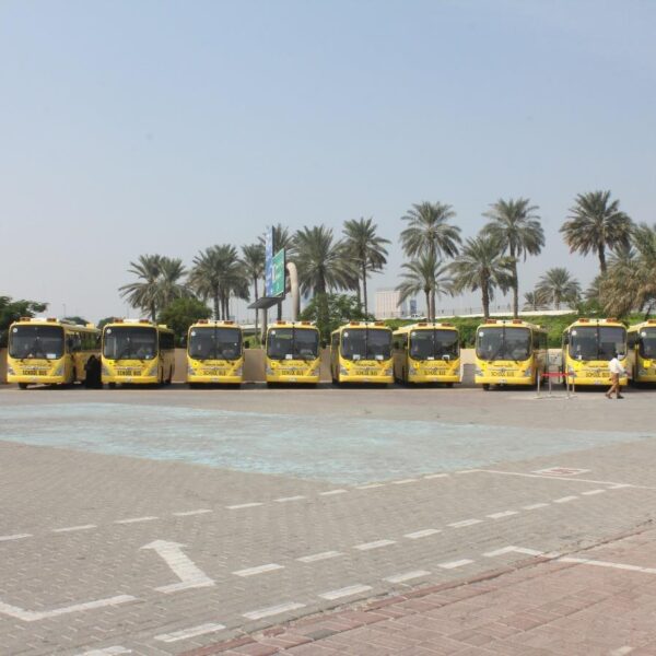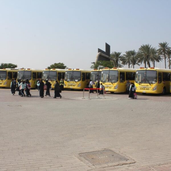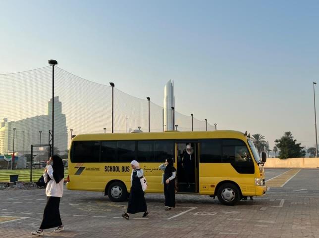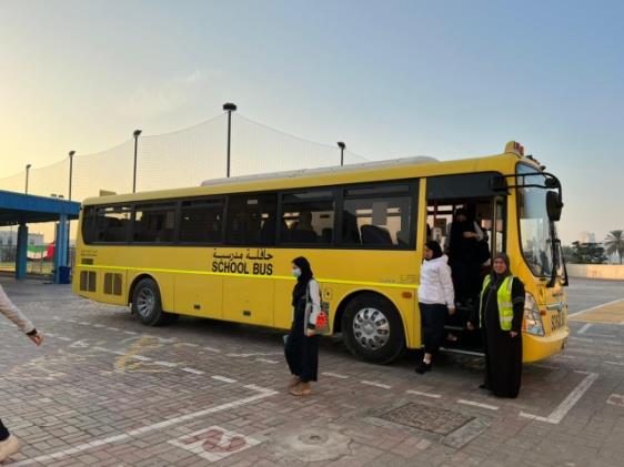 تلتزم خدمات النقل المدرسي التي تقدمها المدرسة بضوابط ومقاييس ، لتحقيق السلامة والأمان لجميع الطلبة، إضافة إلى توفير الأعداد الكافية من السائقين والمشرفين المؤهلين، وحشد الإمكانيات الضخمة لتطبيق المواصفات المطلوبة. إسهاماً منها في توفير بيئة مدرسية ناجحة تحقق تطلعات المجتمع، وتلبي احتياجاته التنموية